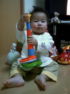この写真は、子どもが保育園で貰ったクリスマスプレゼント。キリンの輪投げちゃん。