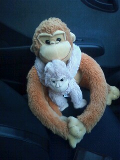 あっ、写真のサルのぬいぐるみは、トイザラスで999円で売ってます。